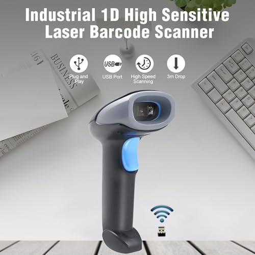 Shreyans 1D Wireless Barcode Scanner with 2.4GHz Nano Receiver (1 Year Warranty)