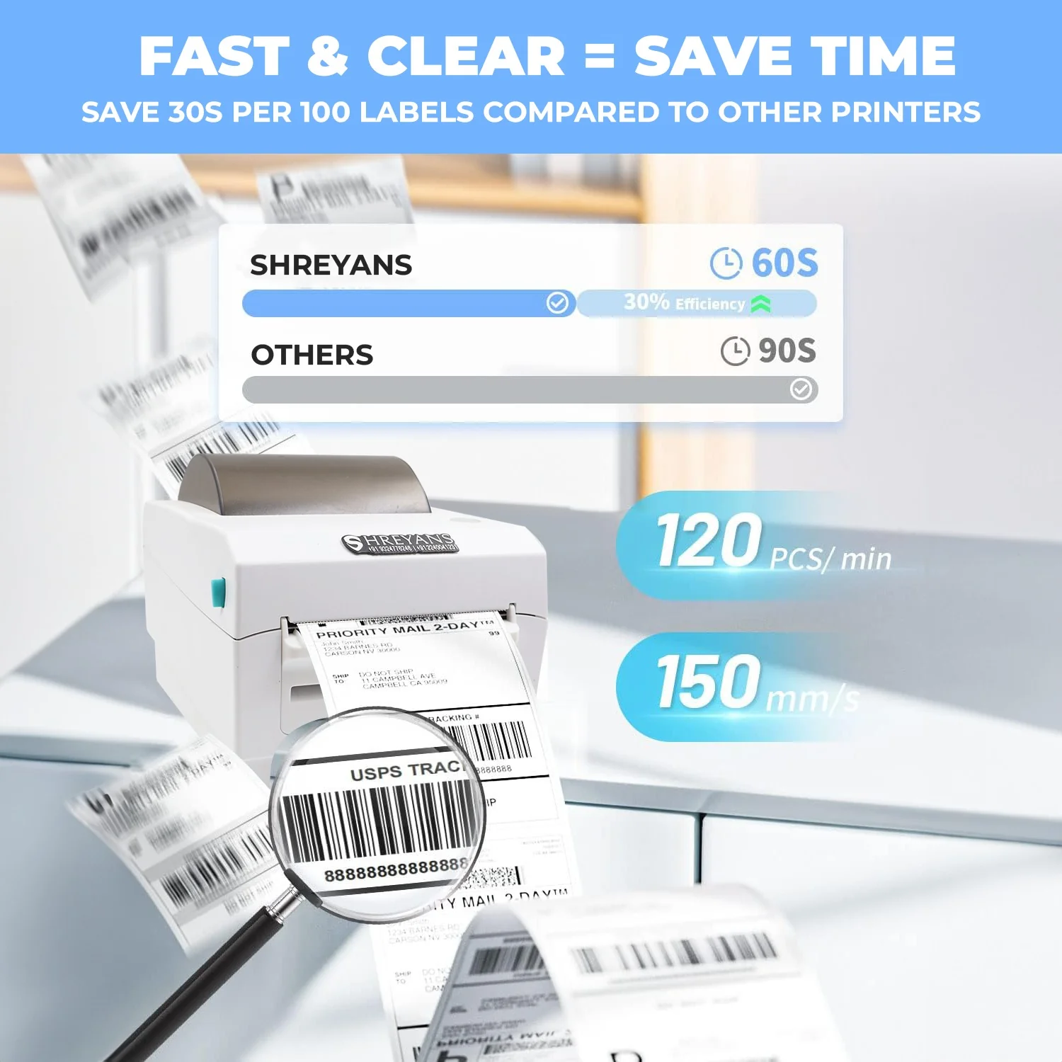 SHREYANS (CD410) 100mm Bluetooth Barcode Label + Receipt Printer with Free 250 Labels