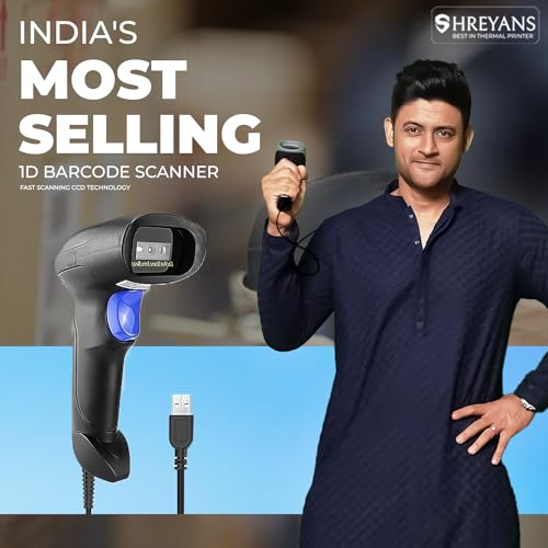 USB 1D Barcode Scanner Handheld (Gun Type) with Fast Scanning CCD Technology (2 Years Warranty)